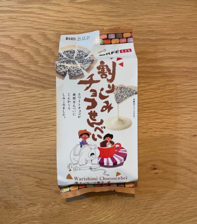 南部せんべいにホワイトチョコが染み込んでとても美味しいんです〜